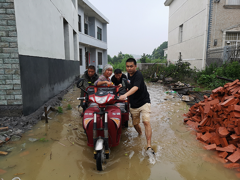 在国瓷古城村,100户被困群众正在转移到安全地。当地党员干部连续作战,顾不上吃饭休息,先把受灾群众安置好。