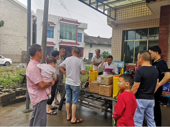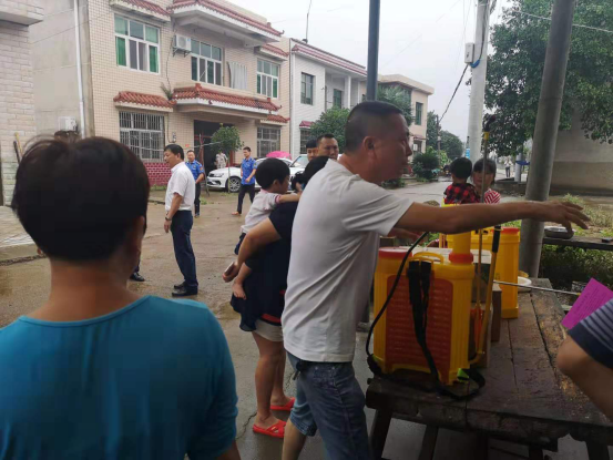 经过暴雨洗礼,为了预防疾病感染,国瓷街道、村两级干部联合同仁医院在受灾地区免费为村民发放药品,并开展消毒工作。