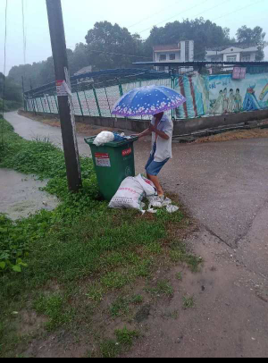 7月8日,雨已经下了一天。傍晚时分,古城村主任杨卫平前往低洼处邓上组察看水位,遇上了正拖着垃圾桶艰难前行的村民张建平,忙拦下他:“下这么大的雨,你在干什么,赶紧回家”。张建平摆摆手:“可能要涨水,我得把垃圾桶收拢转移到较为安全的地方,以防被水冲走造成污染。”
