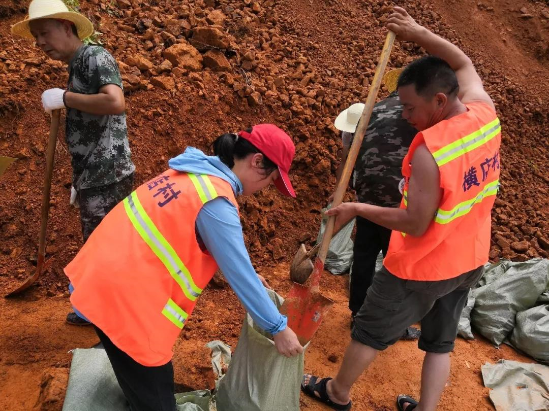 谁说女子不如男,石塅村志愿者陈芬(上)、古城村志愿者杨洁(下),巾帼不让须眉,连续两天奋斗在支灾现场。