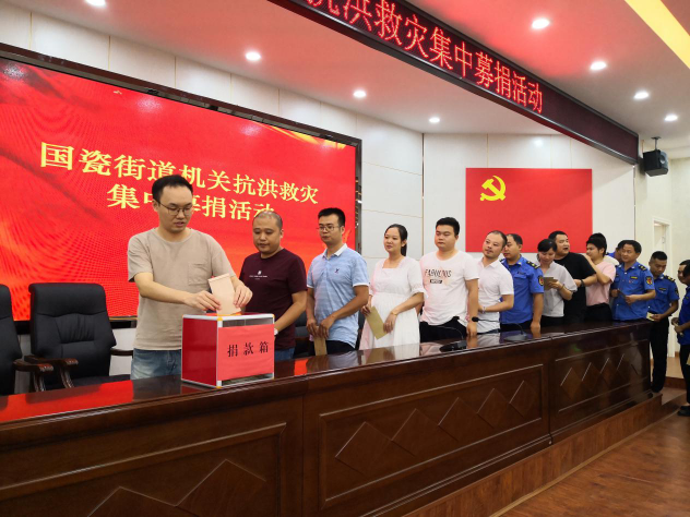 抗洪救灾募捐活动正在国瓷街道辖区各村如火如荼开展,截止7月18日17时,共募集爱心善款289490元,所有爱心款项将在活动结束后统一移交至市慈善会用于灾民救助和灾后重建。