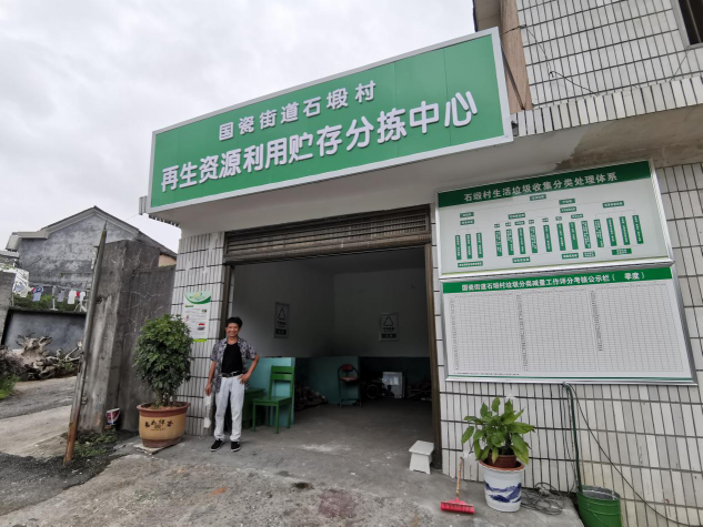 为全面普及垃圾分类与减量知识,传播资源节约及环境保护理念,日前,石塅村再生资源利用贮存分拣中心正式投入使用,肖忆平就是分拣中心的管理员。
