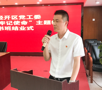 根据上级党委、主题教育指导组和经开区党工委《关于开展“不忘初心、牢记使命”主题教育的实施方案》、《“不忘初心、牢记使命”主题教育学习方案》要求,经开区党员干部读书班在24日至26日成功举办,26日下午读书班举行结业式,经开区主题教育领导小组办公室主任、党工委委员、管委会副主任陈丰华主持结业式。