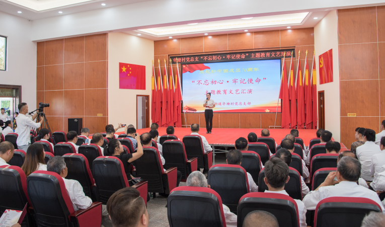 为庆祝新中国成立70周年,凝聚爱国激情,9月30日上午,华塘村党总支在村级文体活动中心开展“不忘初心,牢记使命”主题教育文艺汇演。节目全部由该村党员自编、自导、自演,精彩纷呈、磅礴大气,主题鲜明、正能量满满,赢得现场观众一致好评。经开区党工委委员 、管委会副主任、国瓷街道党工委书记赖洪率经开区及街道相关负责人到会指导,市文明办、街道党建站及辖区各村党建专干现场观摩,演出还吸引了众多村民热情围观。
