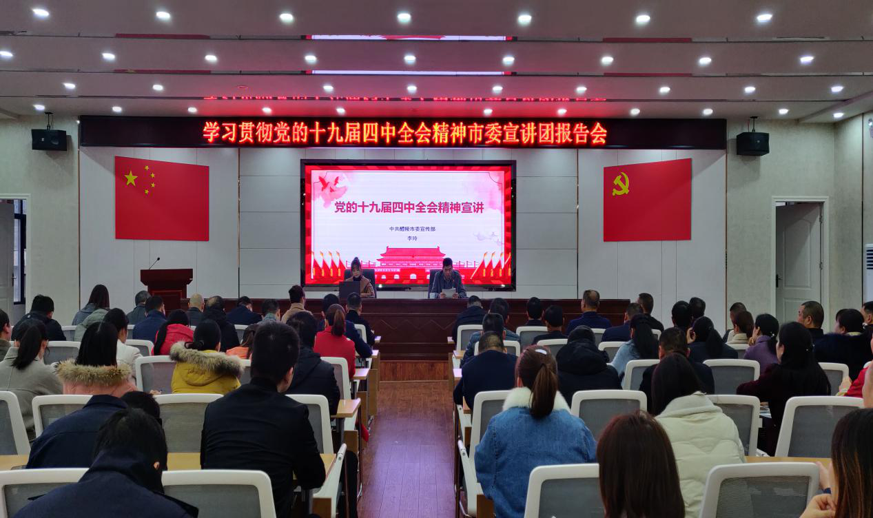 12月30日下午,国瓷街道召开党的十九届四中全会精神专题学习会,邀请了醴陵市委宣讲团成员、市委宣传部文明建设科干部李玲宣讲全会精神。会议由街道党工委书记赖洪主持,机关及辖各村“两委”干部共120余人参会。