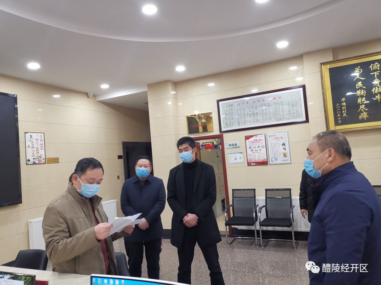 2月6日上午经开区党工委副书记、管委会主任谢圣才到国瓷街道督导疫情防控工作。