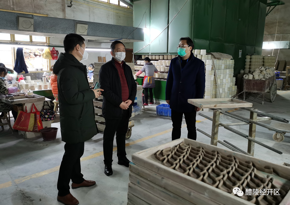 2月21日上午,经开区党工委副书记、管委会主任谢圣才到高佳瓷业、东富污水处理厂、中盐美福生态肥业、碲化镉发电玻璃等企业和项目现场,督查复工生产建设情况。