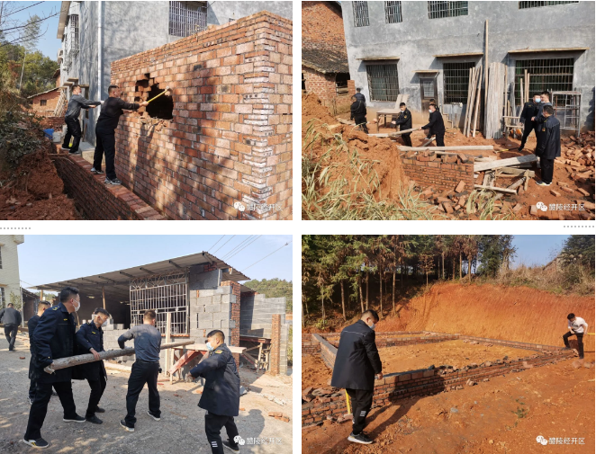 2月23日下午,长庆示范区采取果断措施,迅速对双江村、长庆寺村的4处违法建筑进行了集中拆除行动,共拆除新增违建4处,面积370余平方米。在此次行动中,示范区启用拆违新设备——充电电镐,为今后队员拆除违建的效率起到了很大辅助作用。