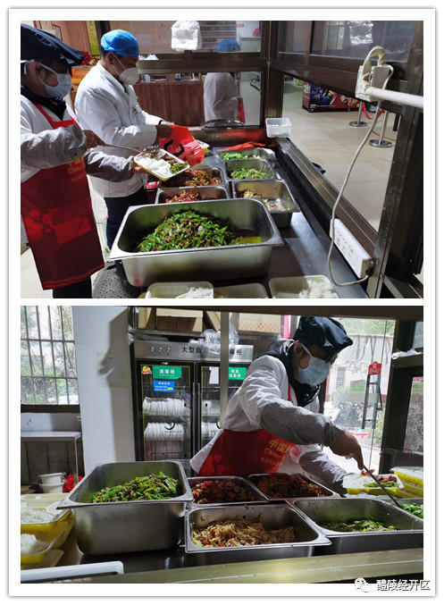 为了让大家吃上安全可靠的饭菜,所有工作人员全天候佩戴口罩,每天由专人负责采购新鲜食材,保证来源可靠安全,饭菜统一使用一次性消毒餐盒,由专人送饭。同时每天提前对工作场所进行消毒,确保给防疫一线工作人员提供安全放心、可口营养的餐品。