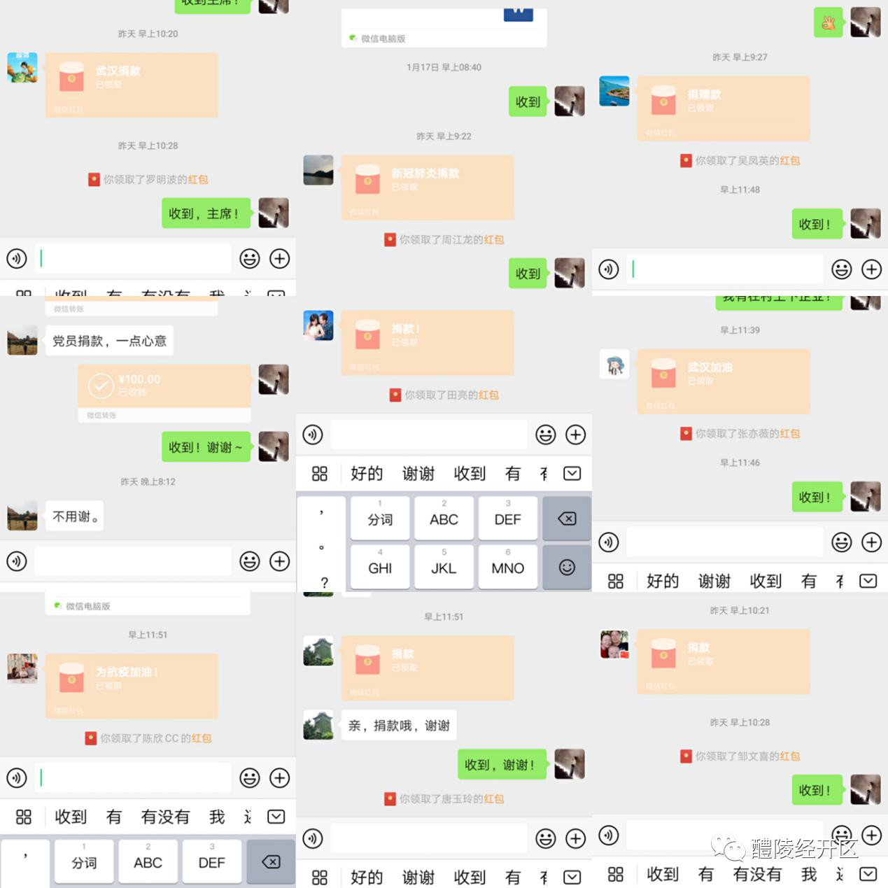 捐款活动一开始便得到大家的积极响应,街道领导带头捐款,全体党员干部踊跃奉献爱心,各支部第一时间将通知转发至微信群,激起了一波微信转账捐款的热潮。来自四面八方标注着“捐款”、“武汉加油”、“为抗疫加油”的微信红包、转账汇成一股股爱的暖流。截止29日下午五时,已有548名党员干部参与捐款,目前爱心还在继续中。