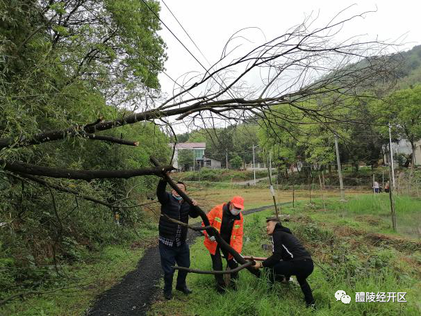 工作人员借来板凳,扶的扶、锯的锯、拖的拖,旁边的村民见状也主动帮忙整理、清运锯下来的枝干,短短半小时现场就清理完毕。当清理图片发到群内,村民们纷纷点赞。