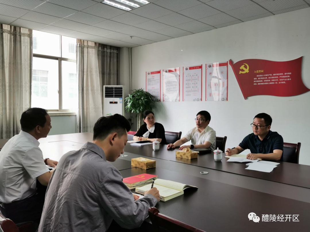 今天上午,经开区党工委书记黎平来到科一环保和帅欧服饰联合党支部指导支部“五化”示范点建设工作,党群工作部相关负责人参加。