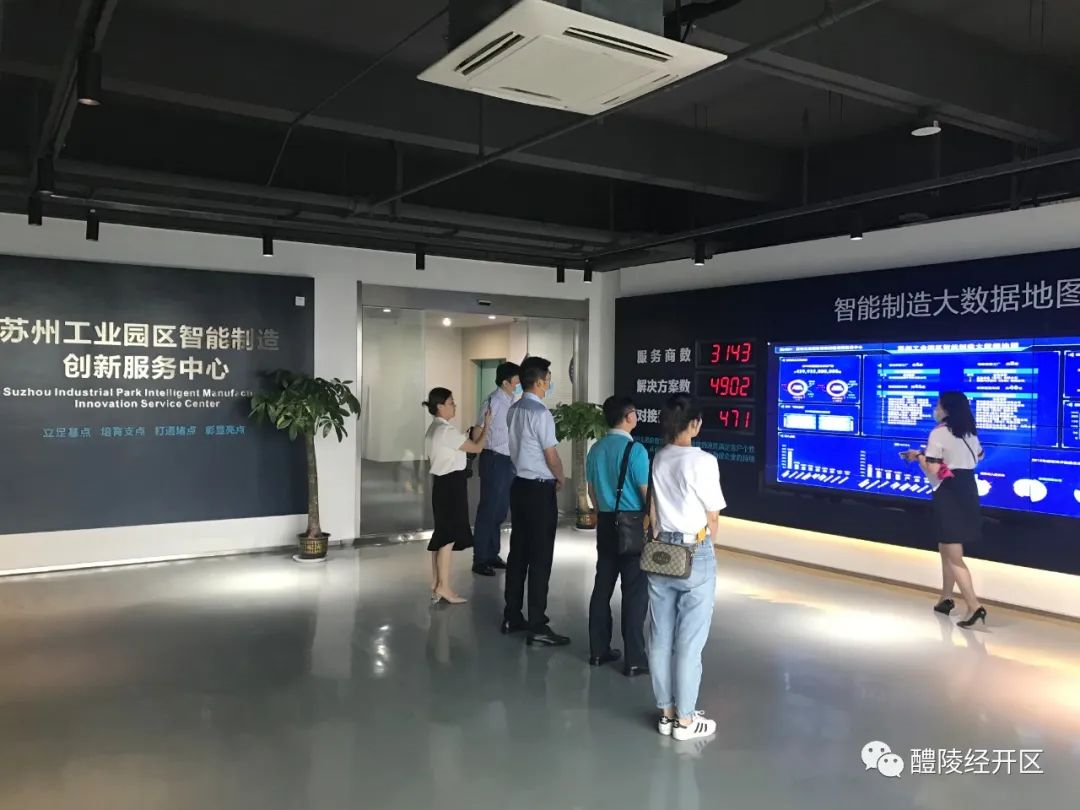 在苏州工业园区智能制造创新服务中心,考察组详细了解了中心服务园区制造业的经验做法和政策。智能制造创新服务中心面向苏州工业园区制造业企业,为区域制造业企业智能制造的技术改造及转型升级提供全方位、一站式、综合性的服务。用户可以通过互联网搜索、在线咨询等方式,获得在线搜索、消息推送和数据化分析等服务,用户能够精准、快捷地找到所需的企业和服务商信息、产品动态、案例情况以及最新的政策和活动资讯。