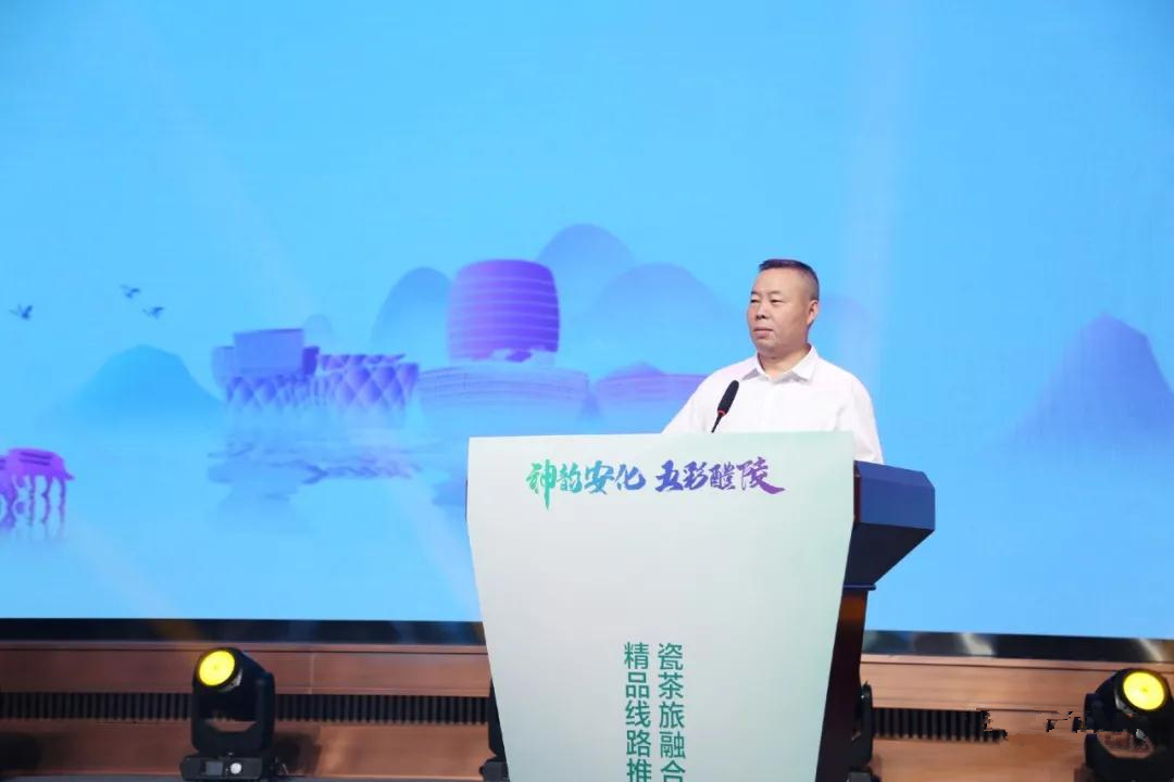 省文旅厅党组成员、副厅长高扬先致辞。他说:今年是湖湘瓷茶旅融合元年,这是推动瓷与茶跨界跨区域联合的一种探索和尝试。举办瓷茶旅融合发展精品线路推介会,将把安化最好的茶、醴陵最好的瓷与最美好的文旅资源充分融合,从梅山文化到炎帝文化,从汉瓷之都到唐茶之乡,从茶马古道到丝绸之路,从湖湘官茶到湖湘官窑...湘瓷、湘茶将拥有更高的品牌价值和更好的未来前景,将让更多人了解和走进安化、醴陵。