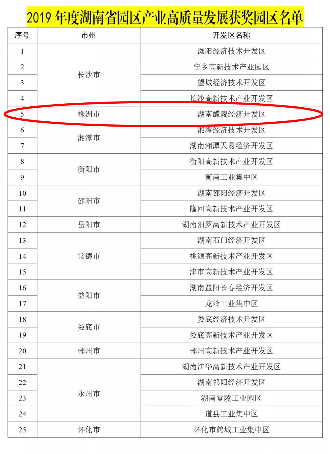 近日,湖南省工业和信息化厅发布了《关于公布2019年度湖南省园区产业高质量发展获奖园区名单的通知》,全省25个园区获得了2019年度湖南省园区产业高质量发展奖励。其中,醴陵经开区榜上有名。