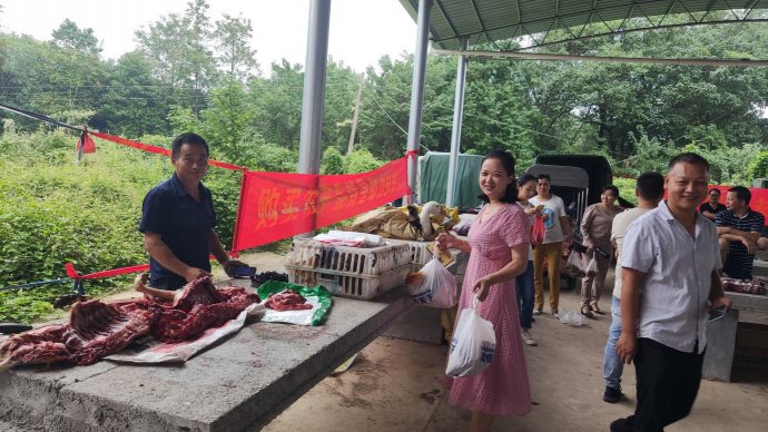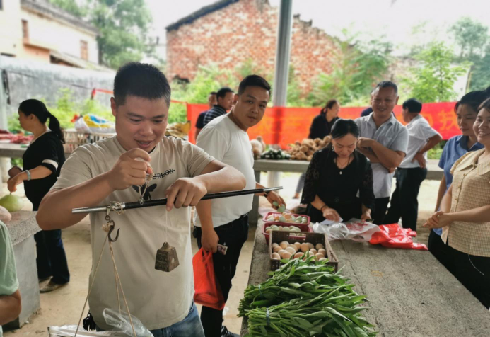 2元一把的香树草、25元一斤的土鸡、4元一斤的甜玉米、4元一斤的香芋……在消费扶贫集市的展位上,新鲜实惠的各类蔬果生鲜吸引了广大市民与职工干部前来抢购。