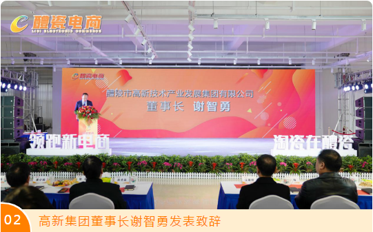 揭牌仪式上,湖南醴瓷电商产业园发展有限公司总经理杨正清首先就公司的发展方向以及园区的楼层规划做了简要介绍。随后,醴陵市高新集团董事长谢智勇发表致辞,致辞中,他对电商产业园的运营发展提出了几点希望。一是抢抓发展机遇,带动传统电商企业、陶瓷企业转型新媒体电商,为陶瓷电商降低创业门槛,做好陶瓷产业链电商销售端重要一环,让醴陵陶瓷产品抢占新电商高地。二是整合产业资源,发挥醴陵千亿陶瓷产业优势,整合产品资源、凝聚电商企业,做好集中仓配物流,降低电商企业整体运营成本。三是服务社会发展,希望醴瓷发挥平台专业优势,服务好青年创业者、服务好入园企业,带动创新、带动就业。
