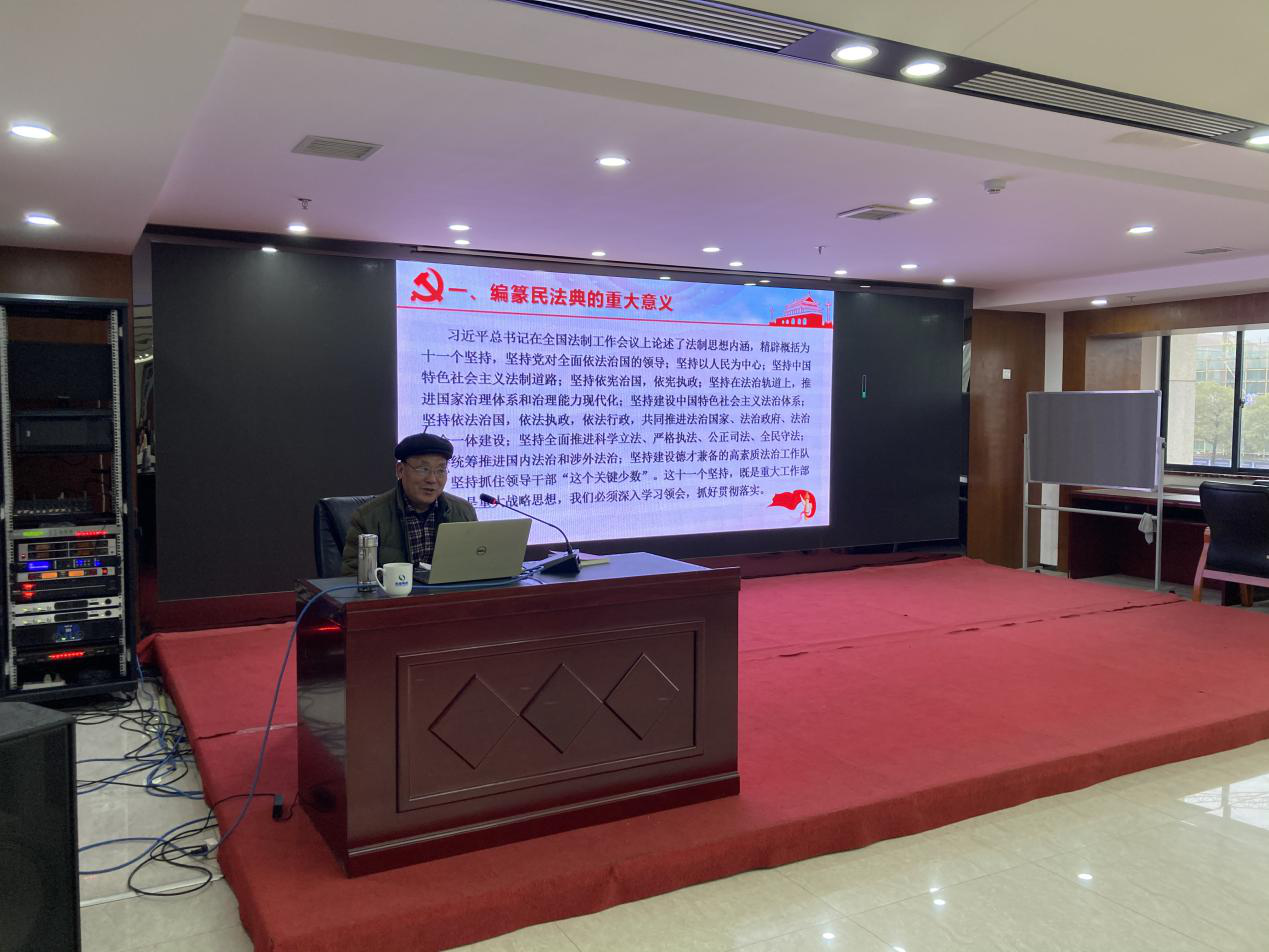 12月11日,高新集团组织全体员工开展《宪法》、《民法典》学习培训,由湖南华豪律师事务所胡今朝律师担任主讲人。