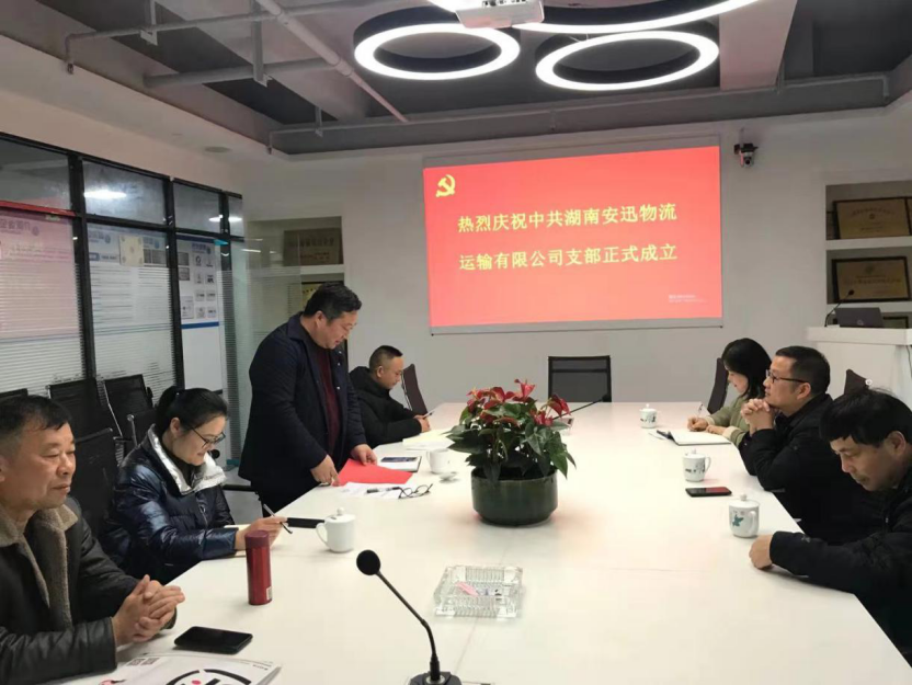 为进一步加强公司党组织建设,用党建工作的成效推动和促进湖南安迅物流实现更好、更快发展。3月5日,中共湖南安迅物流运输有限公司支部成立大会在公司总部1915E区四楼会议室隆重举行。安迅物流全体党员参加会议,安迅物流总经理潘坚列席会议,经开区党群工作部相关负责人参加会议。