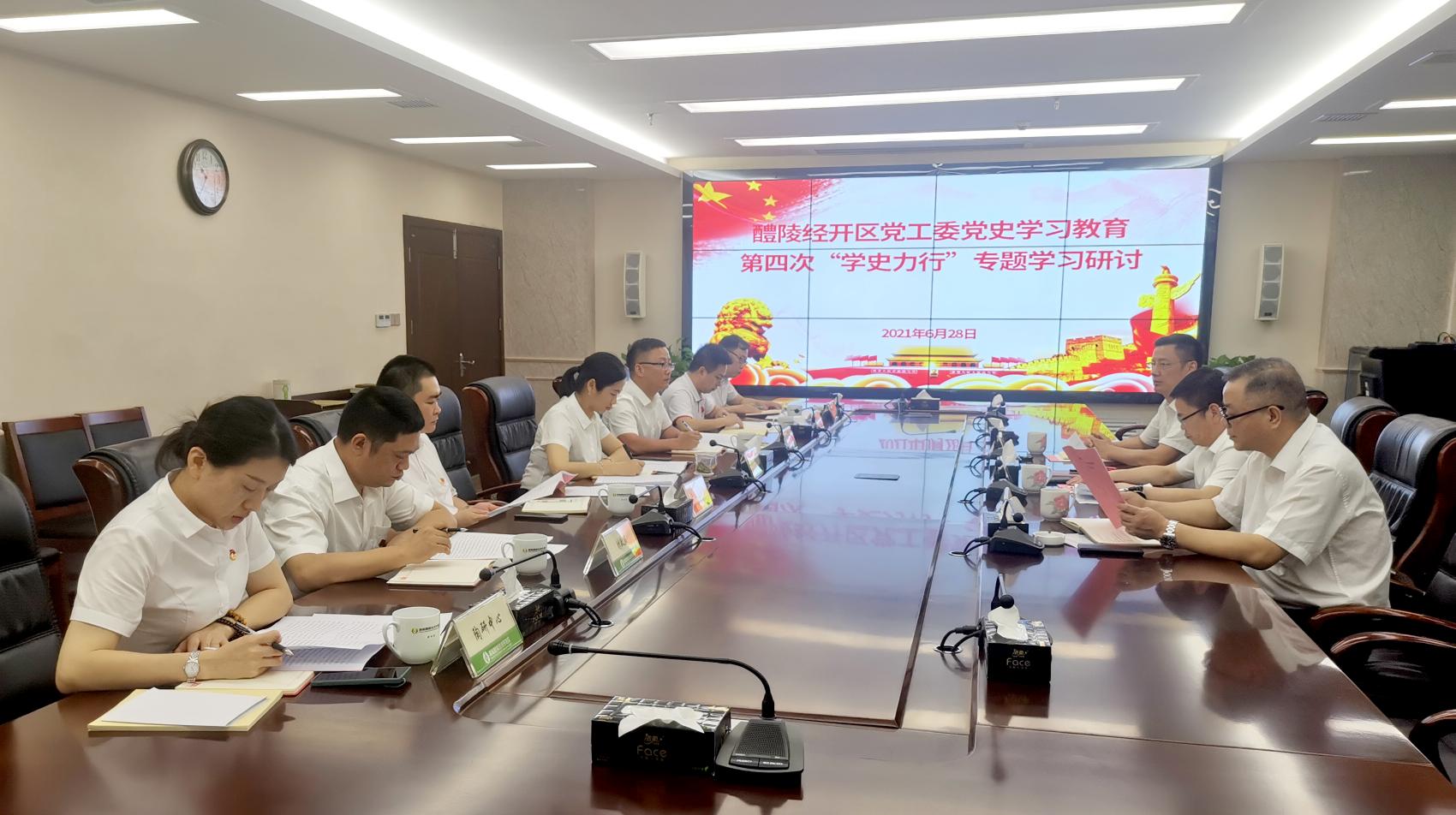6月28日,经开区党工委开展党史学习教育第四次“学史力行”学习研讨。党工委书记黎平主持并讲话,党工委委员、管委会副主任林志祥,党工委委员、纪工委书记刘高飞及经开区各部门负责人参加学习。