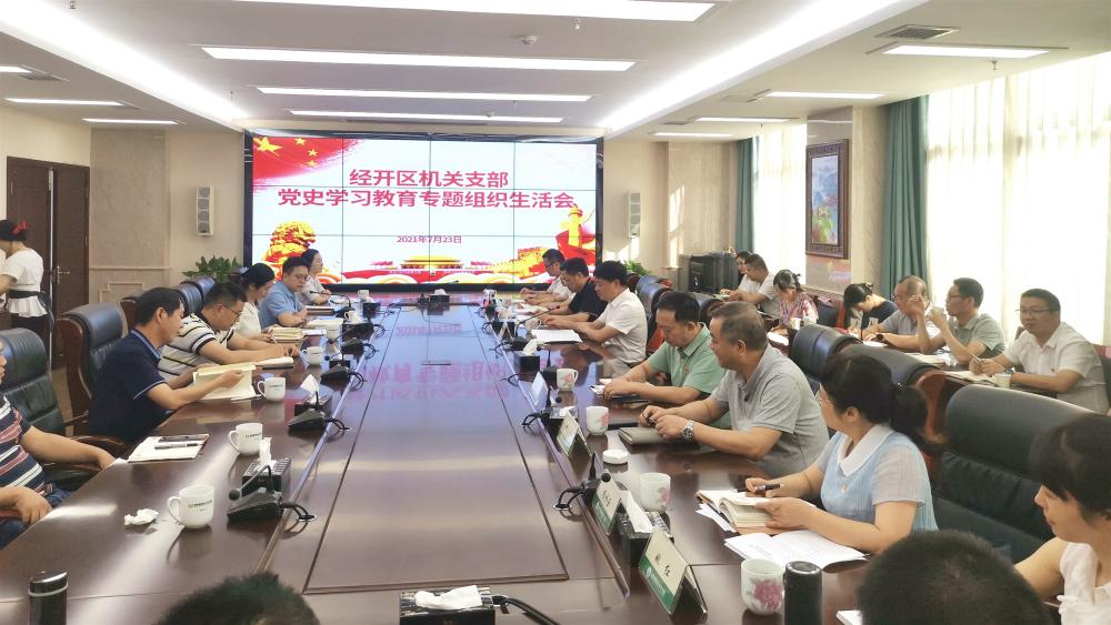 7月23日下午,经开区机关支部召开党史学习教育专题组织生活会,机关支部全体党员参加,市委巡回指导组相关负责同志全程参加指导。