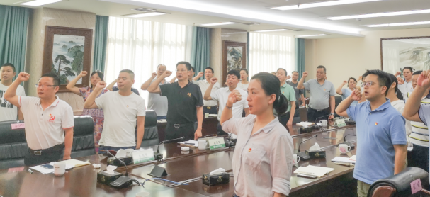 组织生活会第二阶段是全体党员集中在机关二楼会议室开会。机关支部书记陈丰华同志主持会议。会议开始,全体党员起立,在支部副书记邱素纯同志带领下,重温入党誓词,誓言铿锵,初心不改。随后,支部书记陈丰华同志代表支委会向大会报告支部半年度工作及党史学习教育情况;各党小组组长分别简要汇报本组组织生活会情况。支部书记陈丰华在点评中指出,此次组织生活会准备充分、组织工作很严谨、“学党史、悟思想、办实事、开新局”主题突出、班子成员起了很好地示范带头作用、同志们理论水平得到了进一步提高、思想和灵魂得到了一次新的洗礼,效果非常好。