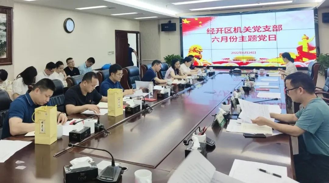 6月24日,经开区机关党支部在机关二楼会议室开展六月份主题党日活动,全体党员、发展对象、入党积极分子参加会议。