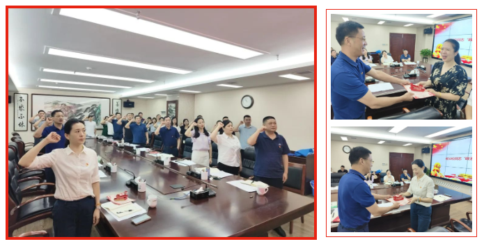 学习结束后,经开区党工委委员、纪工委书记刘高飞为本月过政治生日的10名党员,送上了精致的政治生日贺卡,接受祝福的党员脸上个个洋溢着幸福的笑容。支部党员黄小龙带领全体党员重温入党誓词,铿锵有力的宣誓声在会议室内回荡,在场的每一位同志都接受了一次深刻的党性教育和灵魂洗礼。