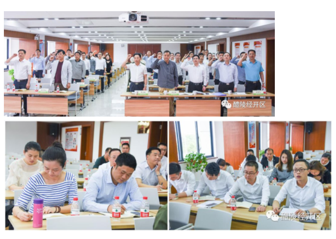 当天,与会人员还重温了入党誓词,铮铮誓言,落地有声,时刻提醒着每一个人要牢记作为一名普通共产党员的初心和使命。经开区机关支部全体党员、高新集团支部全体党员、国瓷街道班子成员代表、均楚镇青山村支村两委代表参加活动。