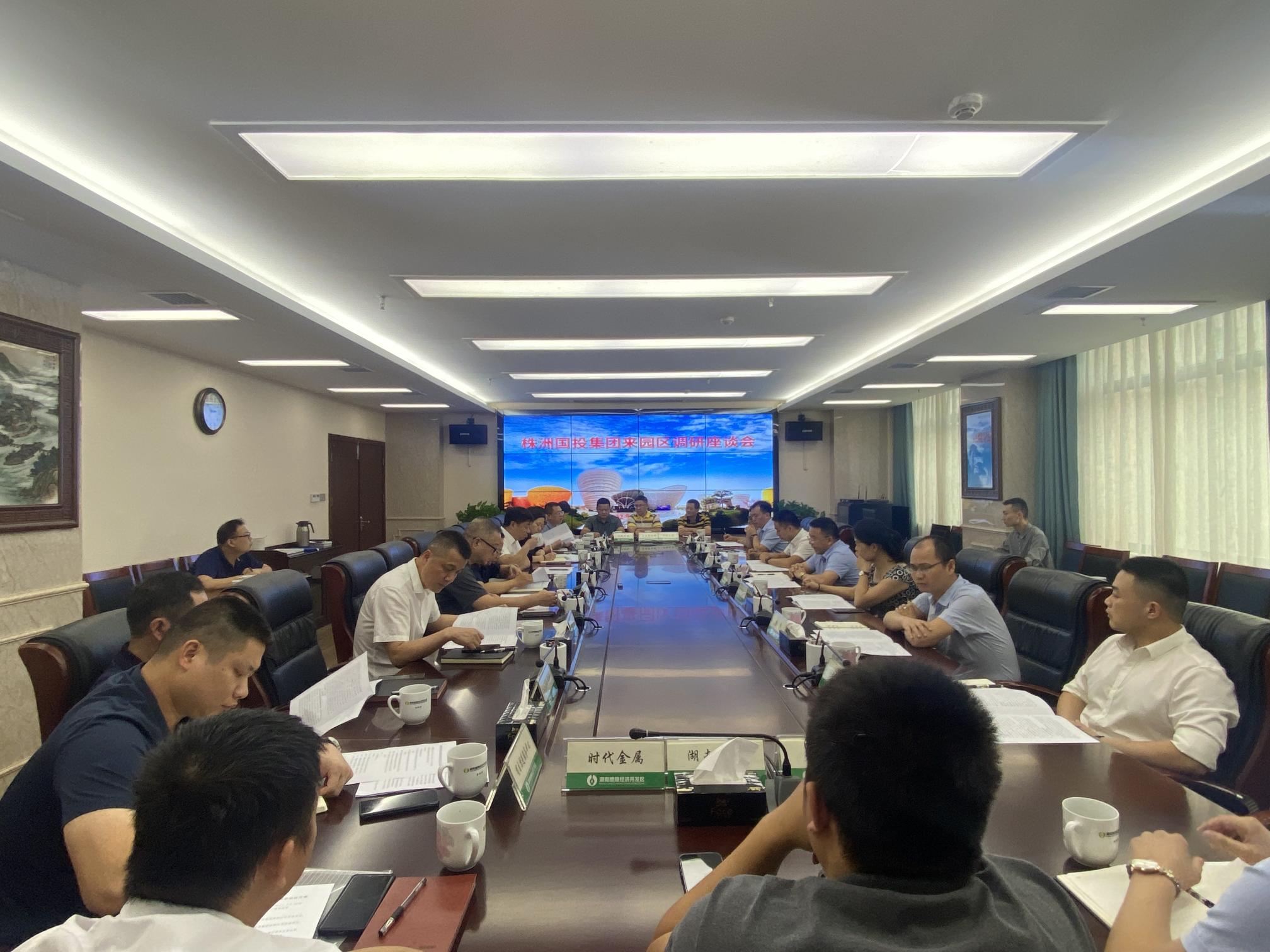 近日,株洲国投集团党委书记、董事长周述勇带队来园区调研。醴陵经开区党工委副书记、管委会主任陈丰华,管委会副主任林志祥、江娅参加座谈。