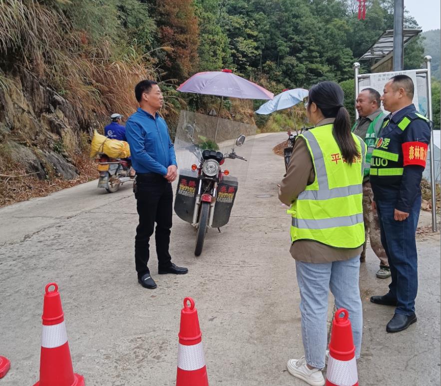 在听取近期森林防火工作汇报后,刘高飞来到几个重点路口巡查点现场了解情况。