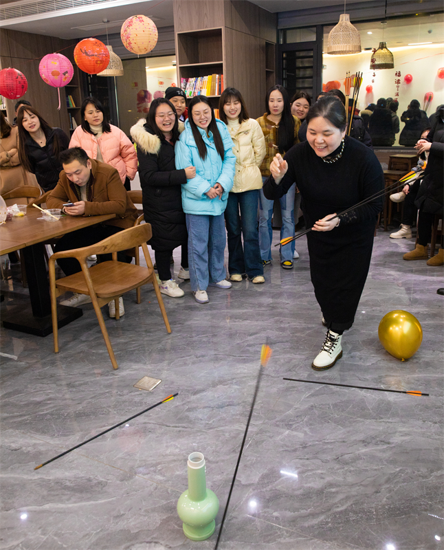 随着主持人对活动的推进,《谁是卧底》、《投壶》等游艺活动让热闹氛围达到高潮。