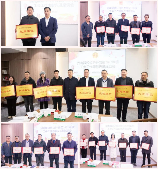 为更好地总结经验、交流工作,选树典型、表扬先进,进一步推动工会工作创新发展、积极发挥基层企业职工群众在园区改革发展中的重要作用,2月24日上午,在经开区管委会一楼园企沙龙举行了2022年度工会工作表彰座谈会。醴陵市总工会领导、园区领导、相关部门负责人、工作人员和部分企业工会主席、优秀工会干部代表欢聚一堂、畅谈交流,现场暖意融融、气氛热烈。