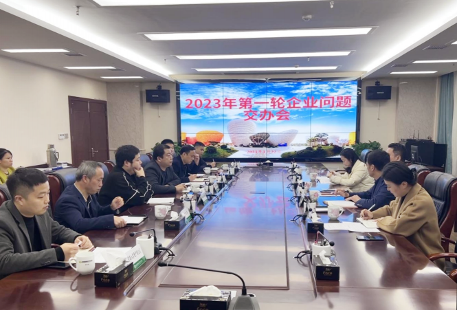 3月22日上午,2023年第一轮企业问题交办会在经开区召开。市委常委、政法委书记、统战部长胡旭,经开区党工委委员、纪工委书记刘高飞出席会议并讲话。经开区企业服务中心、市人社局、市自然资源局等单位相关负责人参加会议。