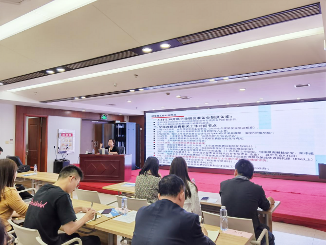 本次培训会特邀请湖南省科技成果与技术市场协会理事长、项目财务评审专家张燕,湖南省科技服务志愿者、湖南湘楚会计事务所副所长王晋参加。会上,两位专家对当前科技创新形势、政策做了详细分析,对如何培育科技型企业以及如何申请研发奖补等做深入讲解,并在具体流程操作上做了全面演示。