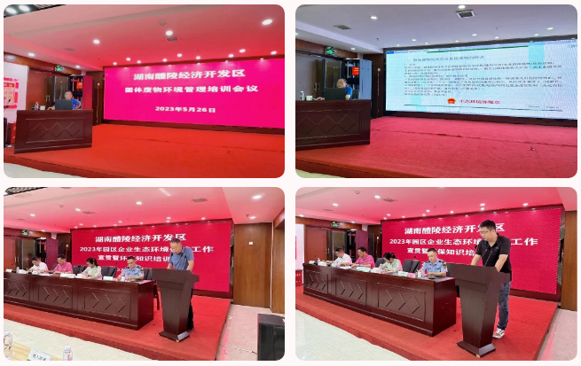 会议组织观看了企业违法警示片,并对株洲市生态环境局制定的《关于开展企业生态环境问题专项帮扶方案》进行了解读,一起学习了固体废物环境管理、企业排污管理规范化等环保知识。华联瓷业、园区第三方环保服务管家作了表态发言。