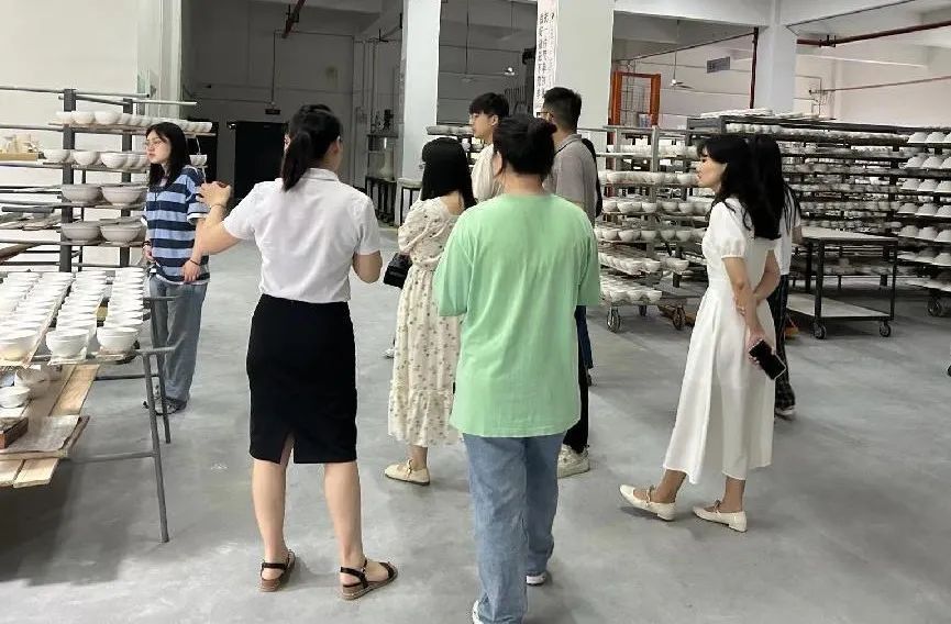 大家深入釉下五彩瓷的生产车间,了解釉下五彩瓷的生产全流程,近距离感受醴陵釉下五彩瓷独特的制作工艺和丰富的文化。“从制泥、拉坯、修坯、洗水、素烧、勾线、汾水、喷釉到烧成,制作一件醴陵釉下五彩瓷器,需要125道细工。而成功烧制一件大型陶瓷作品,有时需要反复试验上百次。”尚方窑工作人员介绍到。“釉下五彩是怎么烧制的?”“釉下五彩瓷特点是什么?”企业服务专员边参观边提问。
