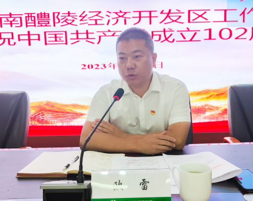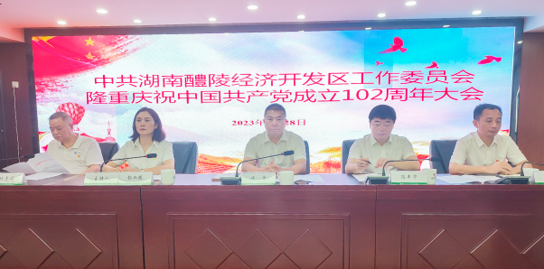 经开区党工委书记欧雷作大会讲话。他说今年是二十大精神贯彻落实的开局之年,也是醴陵决胜千亿时代,经开区决胜千亿园区的关键之年。在中国共产党102周年华诞之际,我们集会隆重庆祝,目的是要铭记党的光辉历史,缅怀党的丰功伟绩,弘扬党的优良传统。他对获奖同志表示衷心祝贺,希望再接再厉、再创辉煌,也希望其他同志学习看齐、做出佳绩。