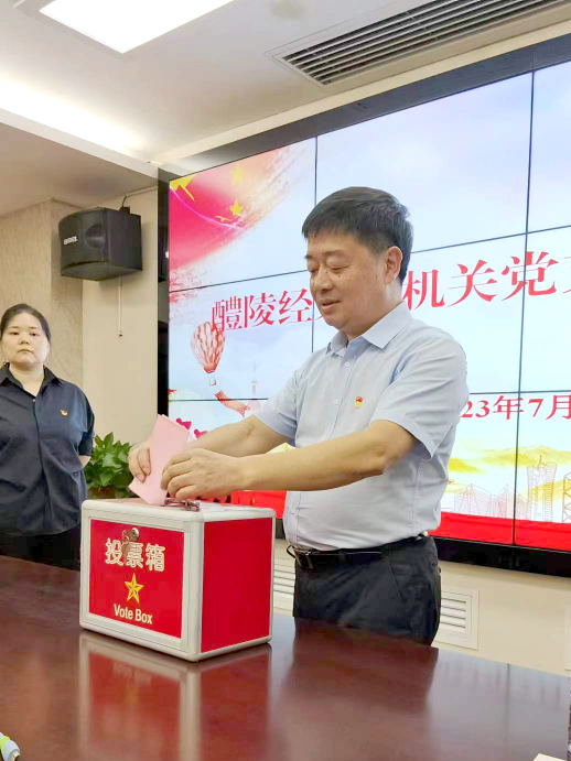 7月28日,醴陵经开区机关党员齐聚一堂,进行机关支部换届选举。