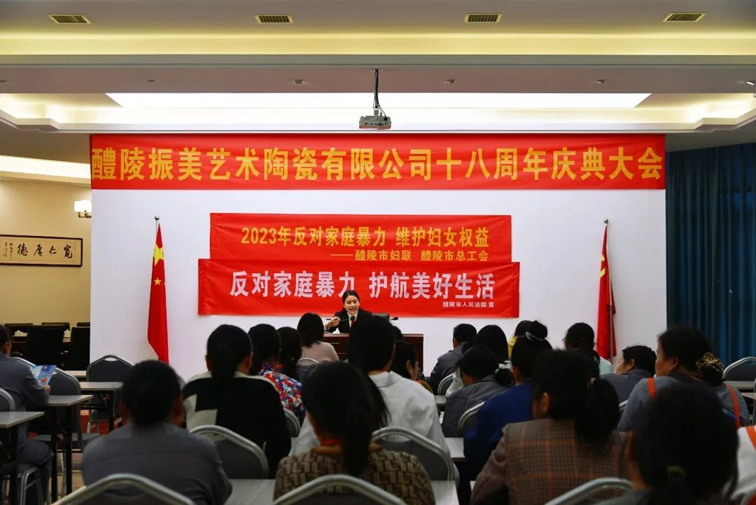为认真贯彻落实反家庭暴力工作,预防和制止家庭暴力,保护妇女儿童的合法权益,进一步提高全社会反家庭暴力意识,建设文明家庭,涵养好家风、凝聚家力量。11月25日“国际反家庭暴力日”,醴陵市法院联合醴陵市妇联、醴陵市总工会在醴陵振美艺术陶瓷有限公司开展主题为“反对家庭暴力、护航美好生活”普法宣传活动。经开区妇联、企业服务中心参与活动。