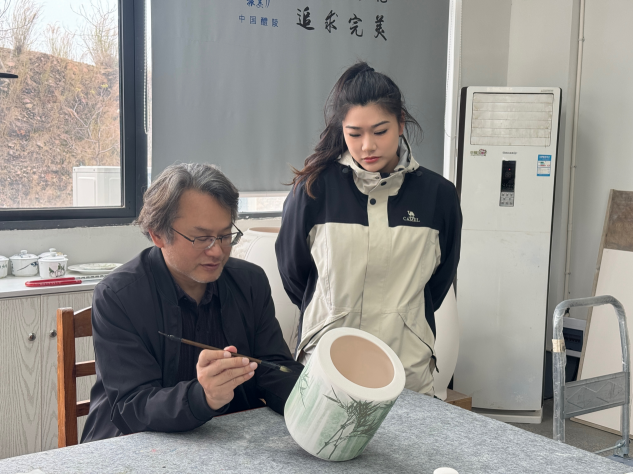 在一年多的工作和学习过程中,师傅悉心教导,徒弟虚心求教。师傅针对徒弟的情况量身制定了完善的学习计划,循序渐进,以讲解、示范、布置作业等方式加强培养徒弟在制作工艺、艺术修养等各方面的能力,为徒弟夯实基础。徒弟怀着对陶瓷艺术极大的热情,认真学习、踏实工作,严格按师傅的培养计划进行学习。在实际学习和工作中,师傅带领徒弟共同参与设计、创作和生产任务,边做边学,以训代学,让徒弟用最短的时间成长进步。除此之外,宋龙飞还带领江南春晓参加各种展览和艺术交流来打开徒弟的视野,培养其艺术素质等核心能力。一年多以来,师徒俩通过以上方式教和学,取得了比较明显的成绩。