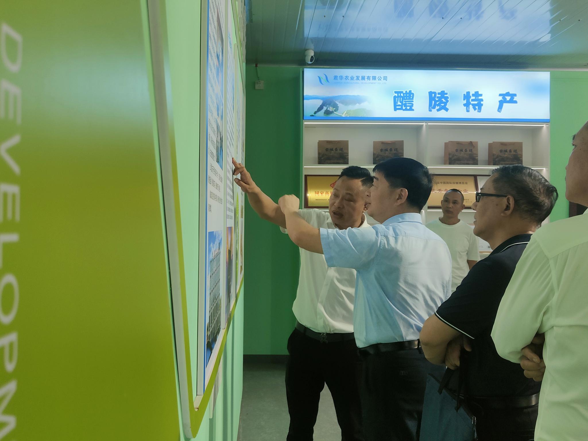 陈丰华一行先后实地查看了古城村乡村道路建设、水体保护以及农业产业化等工作情况。在醴陵君华农业发展有限公司,陈丰华一行参观了公司产品陈列厅及桑葚园,公司负责人向大家详细分享了蚕桑文化,介绍公司药桑和果桑产品,公司去年实现营收约2000万元。陈丰华鼓励他们要不断壮大产业规模,不断延伸产业链条,积极打造桑葚产业链,抓好农旅融合,促进村级农业产业发展。