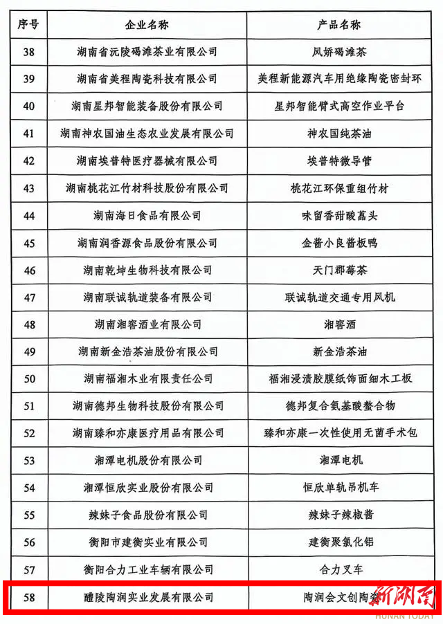 据了解,此次评选,全省共707家企业主动申报,其中73家企业(组织)申报的产品或服务入选首届湖南名品。包括九芝堂六味地黄丸、金杯电线电缆等58个产品类名品;长沙文和友、颐而康保健等7个服务类名品;汉寿甲鱼、宁乡花猪等8个区域品牌类名品。