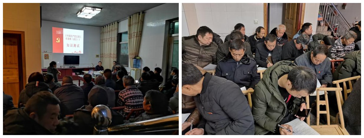 二是将《条例》的学习列入党支部“三会一课”,以主题党日为载体,组织全体党员进行集中学习,原原本本、逐章逐条、逐字逐句,对其进行归纳、总结、讲解,引导党员深入学习、深刻领会《条例》精神,全面掌握《条例》内容,促进党支部标准化、规范化建设,不断提高党支部建设质量。对于年老体弱、行动不便的党员采取“送学上门”形式传达精神。流动党小组以小组形式学习,流动党员则通过微信群、QQ群等互联网手段参加学习。