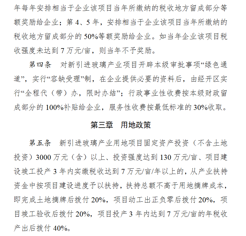 据悉,“玻璃十五条”是醴陵市委、市政府为更好的支持壮大醴陵玻璃产业的发展而特别指定的一个专项优惠政策,新引进玻璃产业园项目可以享受土地、税收、物流、搬迁等多项补贴,奖励幅度空前,满满的干货。