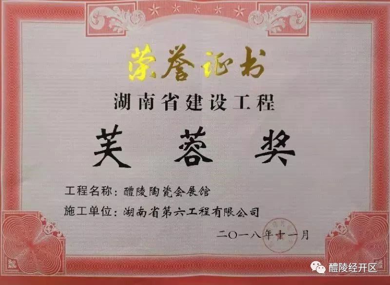 近日,从湖南省建筑业协会传来喜讯,由高新集团投资建设的中国陶瓷谷国际会展中心(原名醴陵陶瓷会展馆)项目工程喜获湖南省建设工程“芙蓉奖”——湖南省建筑行业工程质量最高奖。