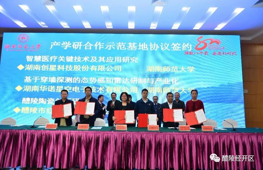 近日,为营造良好科研氛围,推进产学研合作,庆祝湖南师范大学80周年校庆,湖南师范大学产学研合作示范基地项目集中签约仪式在长沙市枫林宾馆长沙会议厅隆重举行,湖南醴陵经济开发区釉下五彩基地知名企业、“醴陵釉下五彩瓷烧制技艺”传承基地——醴陵市红瓷典瓷业有限公司与湖南师范大学工程与设计学院签约共建“醴陵陶瓷创新研发示范基地”项目。醴陵市红瓷典瓷业有限公司总经理彭毅应邀出席本次活动。