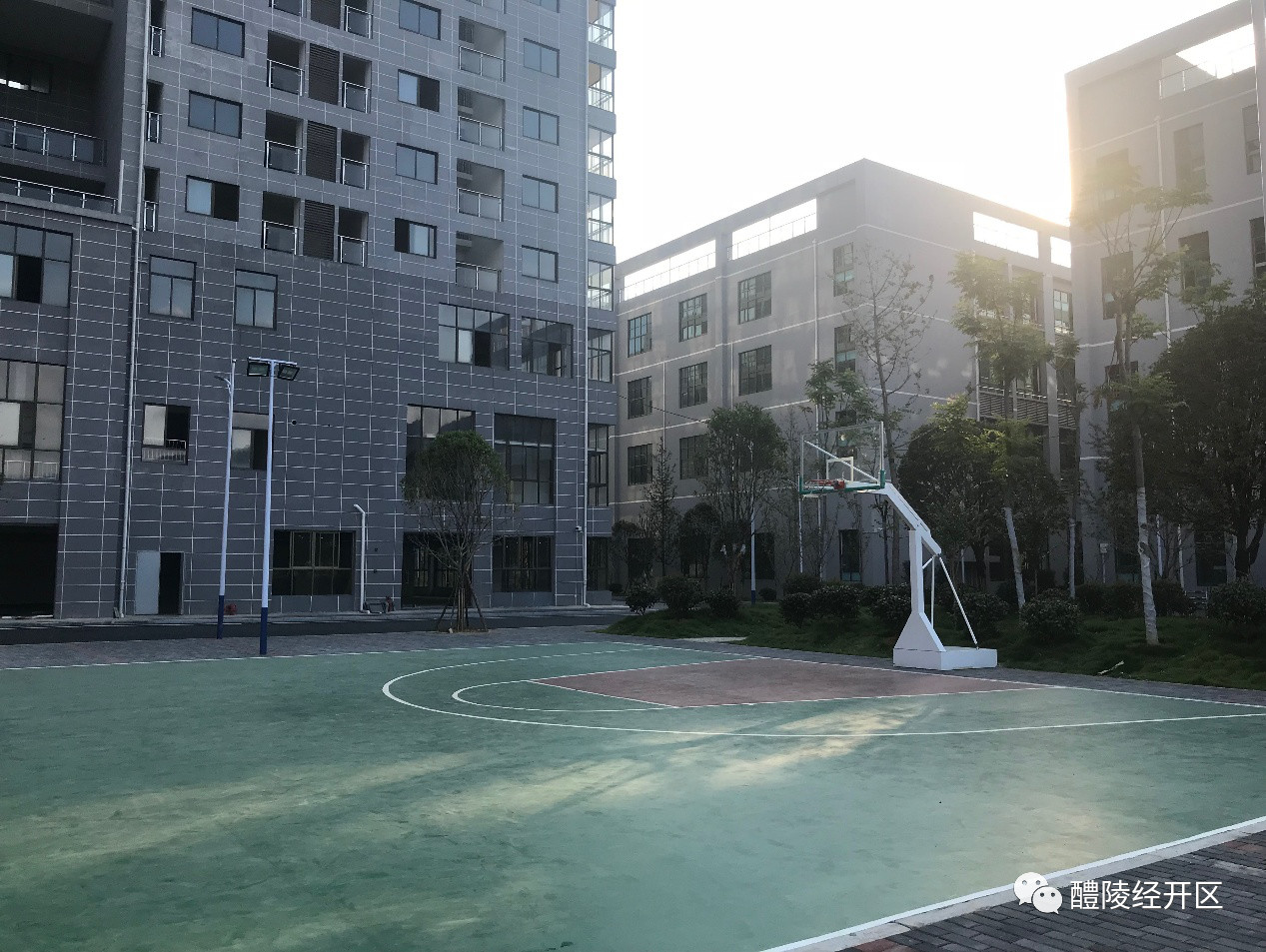 标准化的篮球场、齐备的健身器材、高规格的食堂、高品质的公租房……近日,在经开区横店产业园标准化厂房三期区域内,我们看到了一个不一样的标准厂房,完全打破了我们对传统工业厂房的固有印象,这些平常只在小区和公共广场出现的便民配套设施,出现在了我们的厂区范围内。
