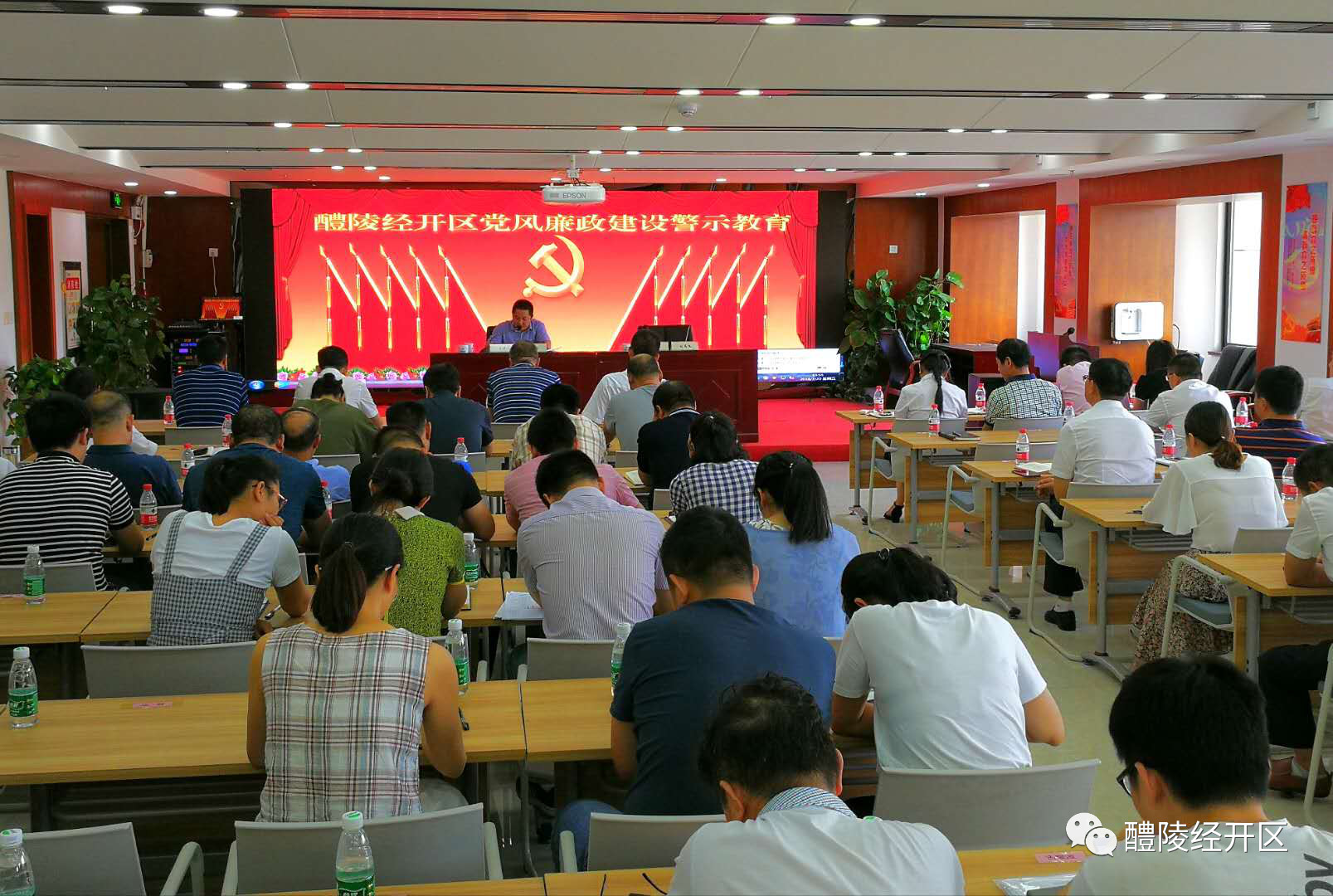 为贯彻落实全市党风廉政建设有关要求,根据经开区2018年党风廉政建设工作计划,7月20日下午,市纪委常委、纪委副书记、监察委副主任罗谷为经开区全体干部职工上了一堂内涵丰富、发人深思、引人警觉的党风廉政建设警示教育课。