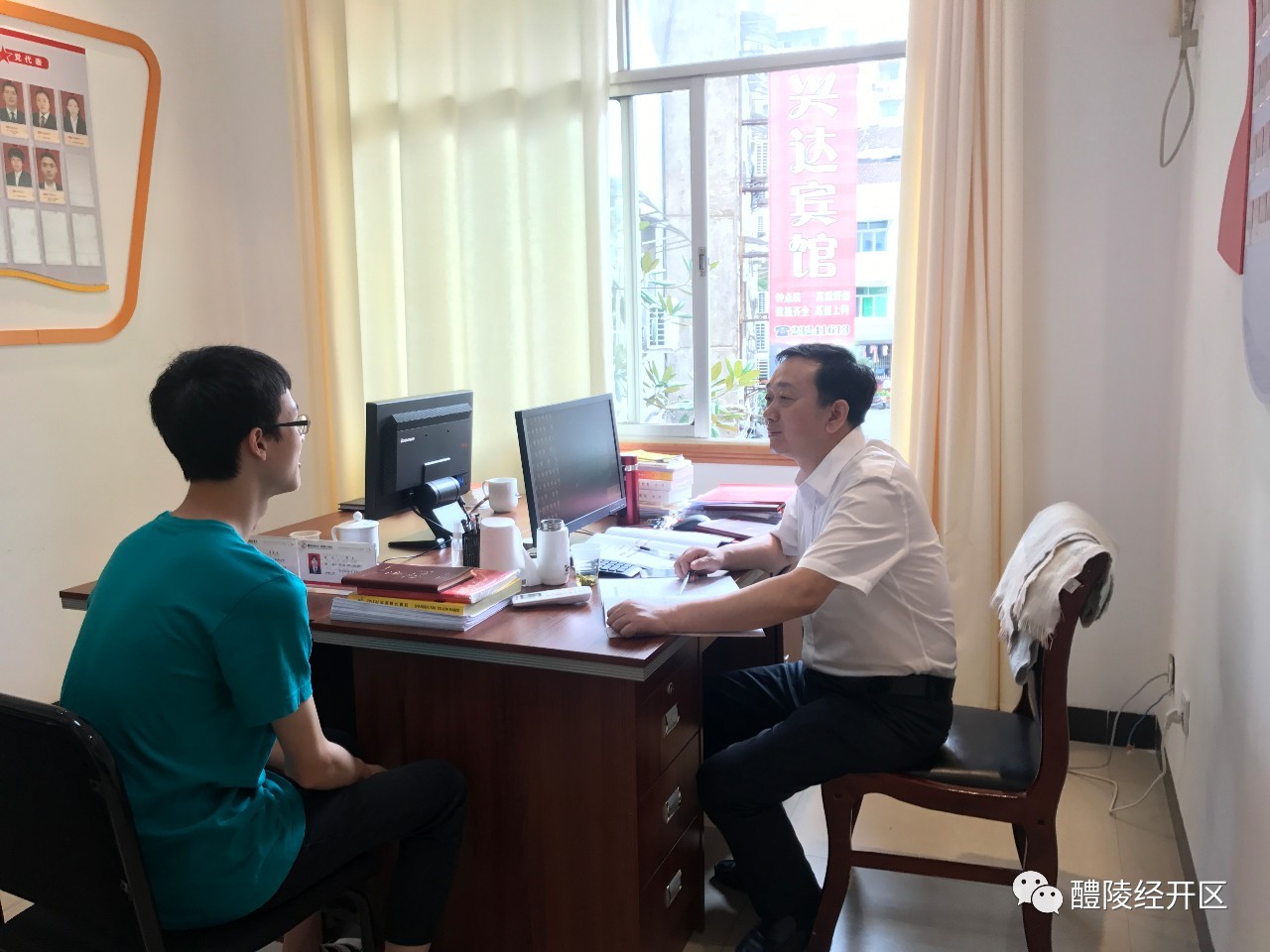 7月6日,经开区党工委副书记、管委会主任谢圣才赴来龙门街道坐班,开展“两代表一委员”接待日工作。